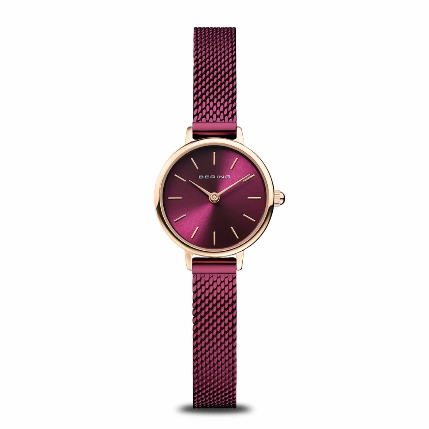 Produktinformationen „Bering Damen Armbanduhr classic Roségold mit Lila Milanaise Armband 11022-969“