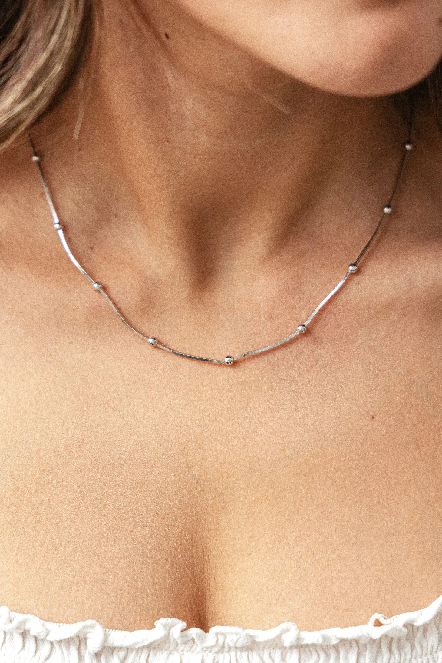 Produktinformationen „Collier 925/- Sterling Silber Schlangenkette vierseitig diamantiert mit Kugeln rhodiniert 41184786448478“