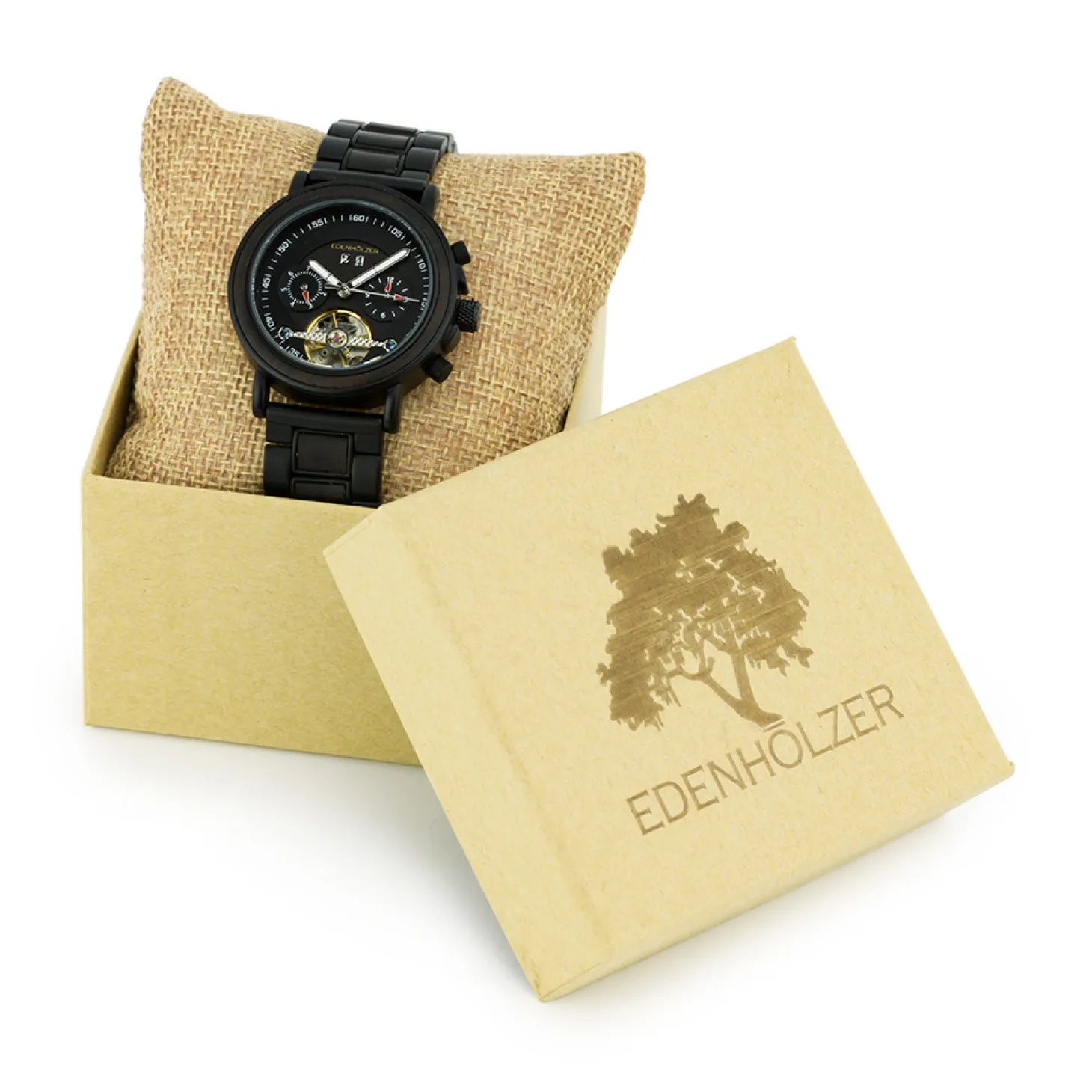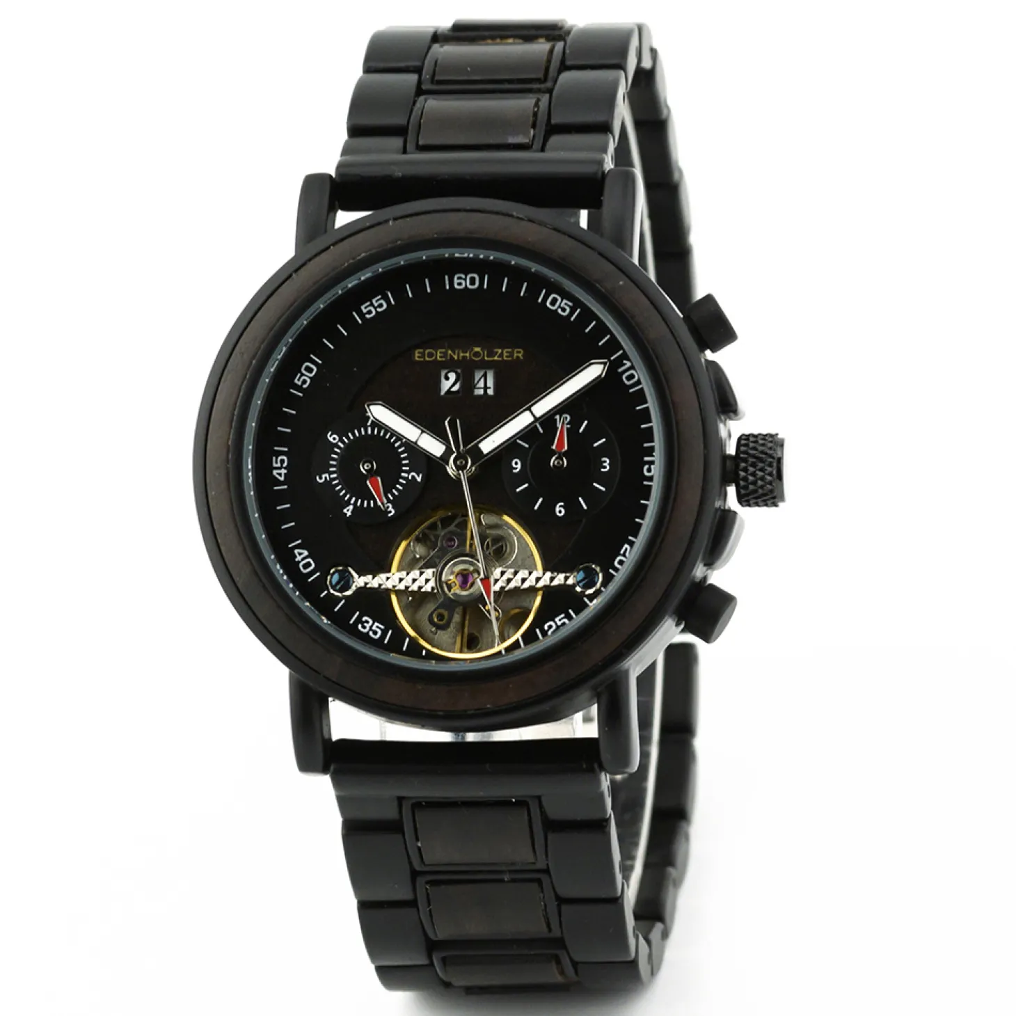 Produktinformationen „Edenhölzer Holzuhr Damen Armbanduhr Automatik Borneo Holzarmband Datumsanzeige“