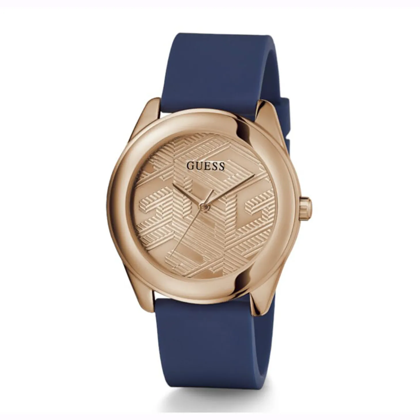 Produktinformationen „Guess Damen Armbanduhr Cubed roségold, blau 40 mm GW0665L2“