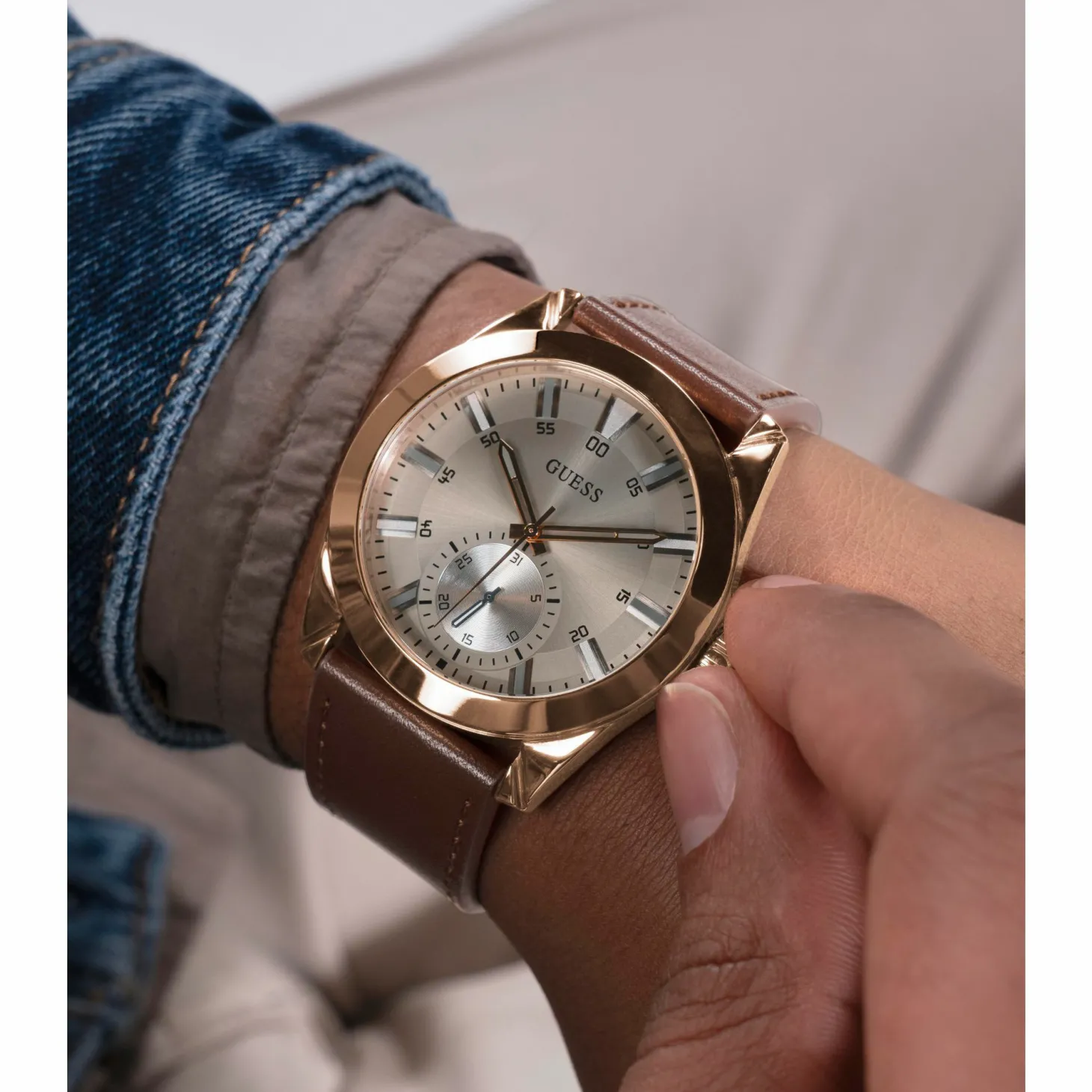 Produktinformationen „Guess Herren Multifunktionsuhr GREYSON GW0793G3 Braun Roségold“