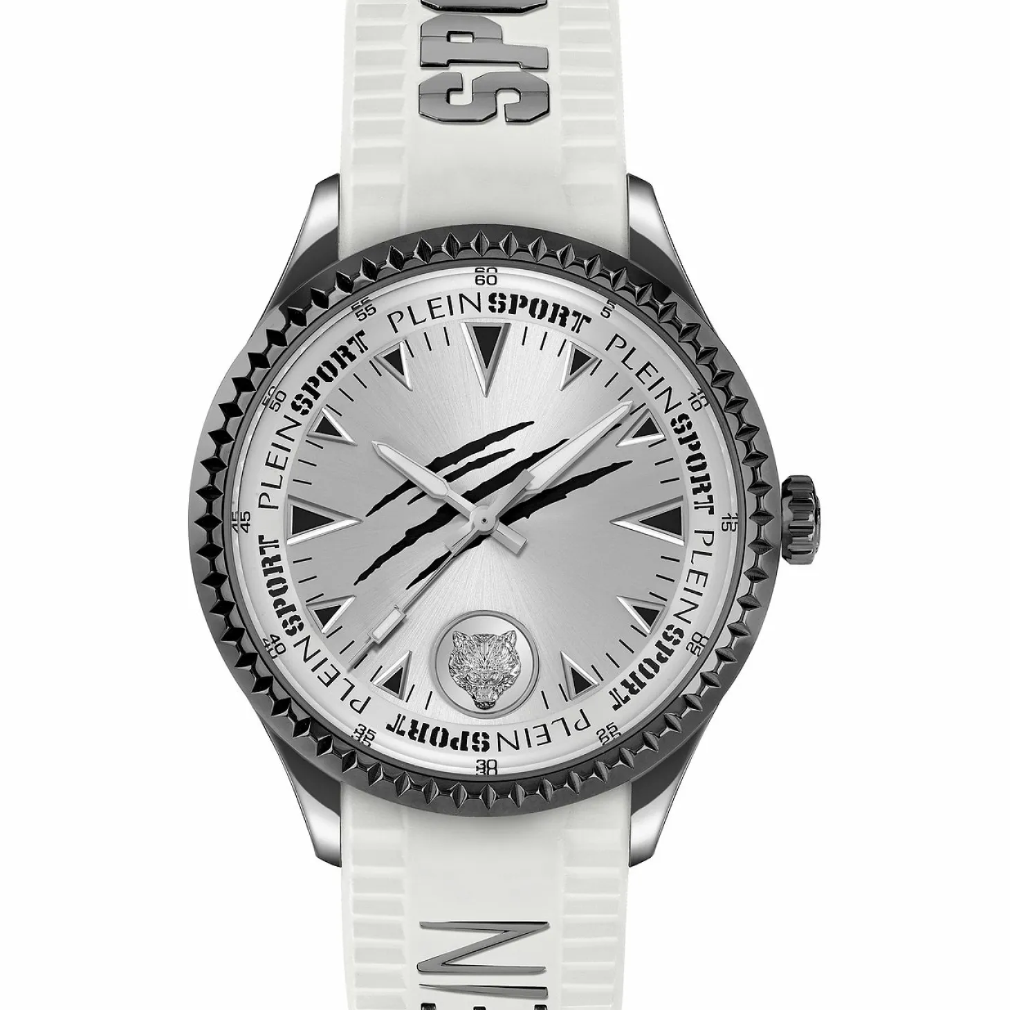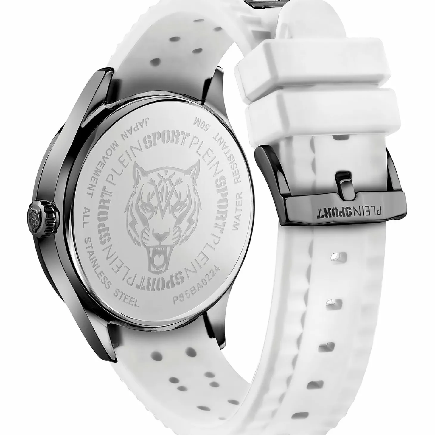 Produktinformationen „Plein Sport Herren Uhr LINEMAN PS5BA0224 Edelstahl IP Gunmetal / Silikon Weiß 45 mm“