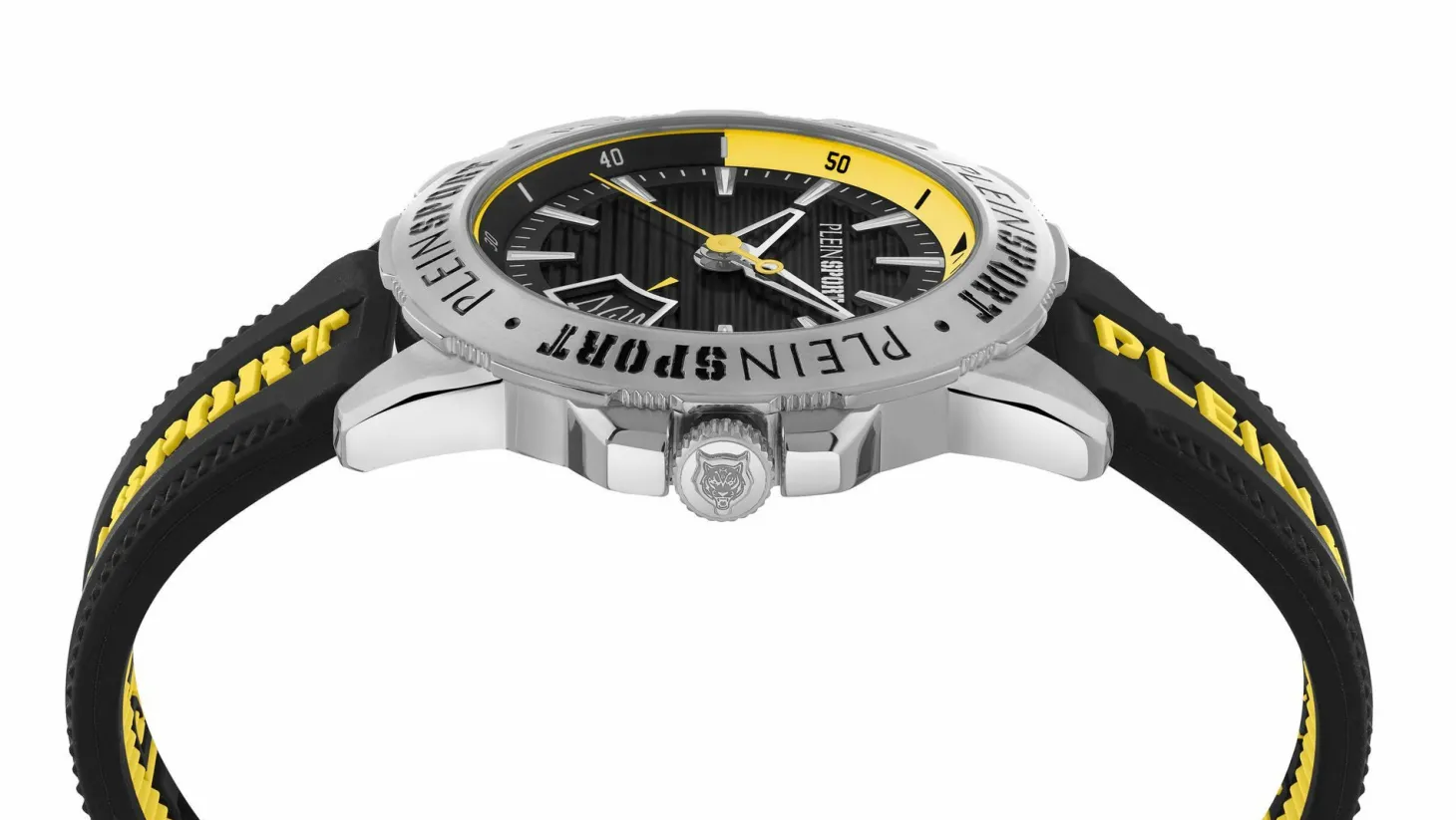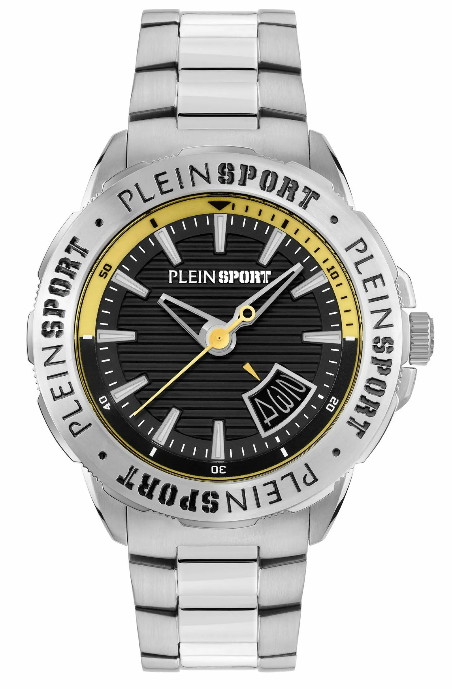 Produktinformationen „Plein Sport Herren Uhr mit umtauschbaren Armband RAMPAGE PSGDA0524 Silber‑Grau Edelstahl Schwarz/Gelb 44 mm“