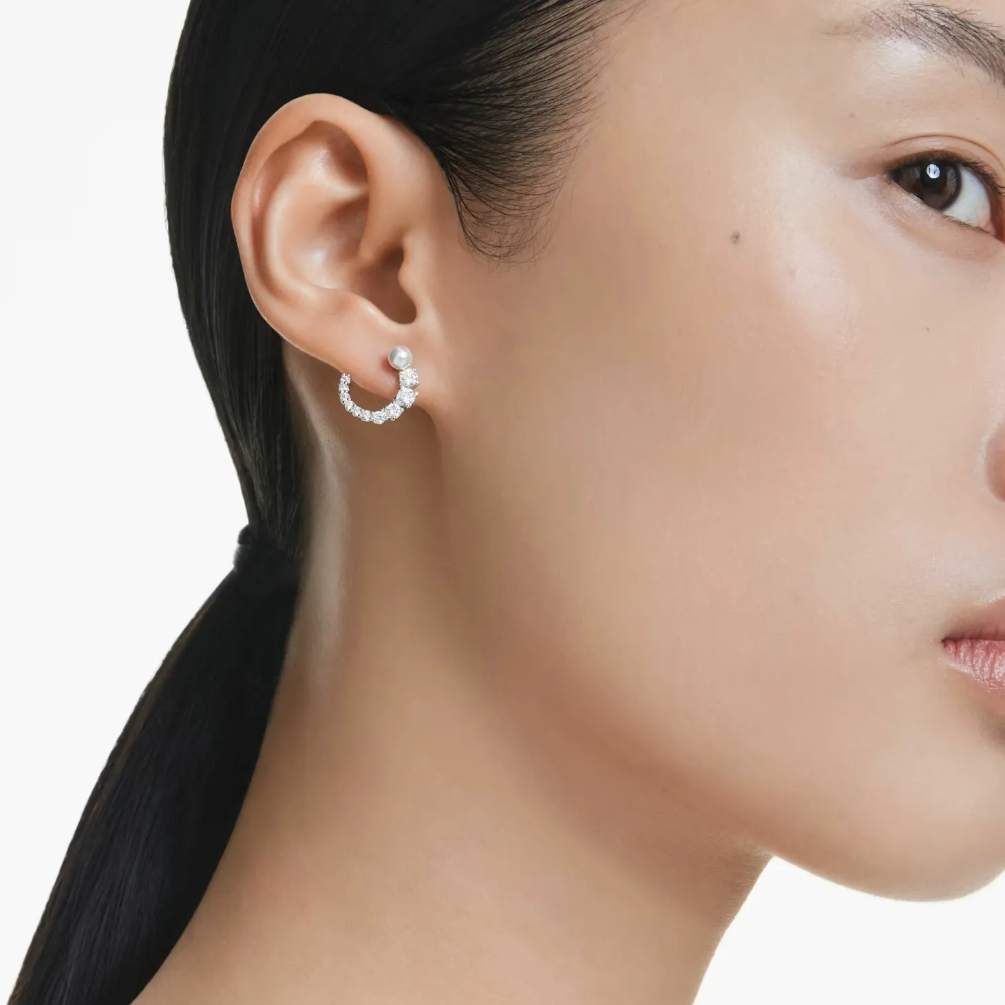 Produktinformationen „Swarovski Creolen Unisex Matrix Kristallperle Weiß Rhodiniert 5692260“