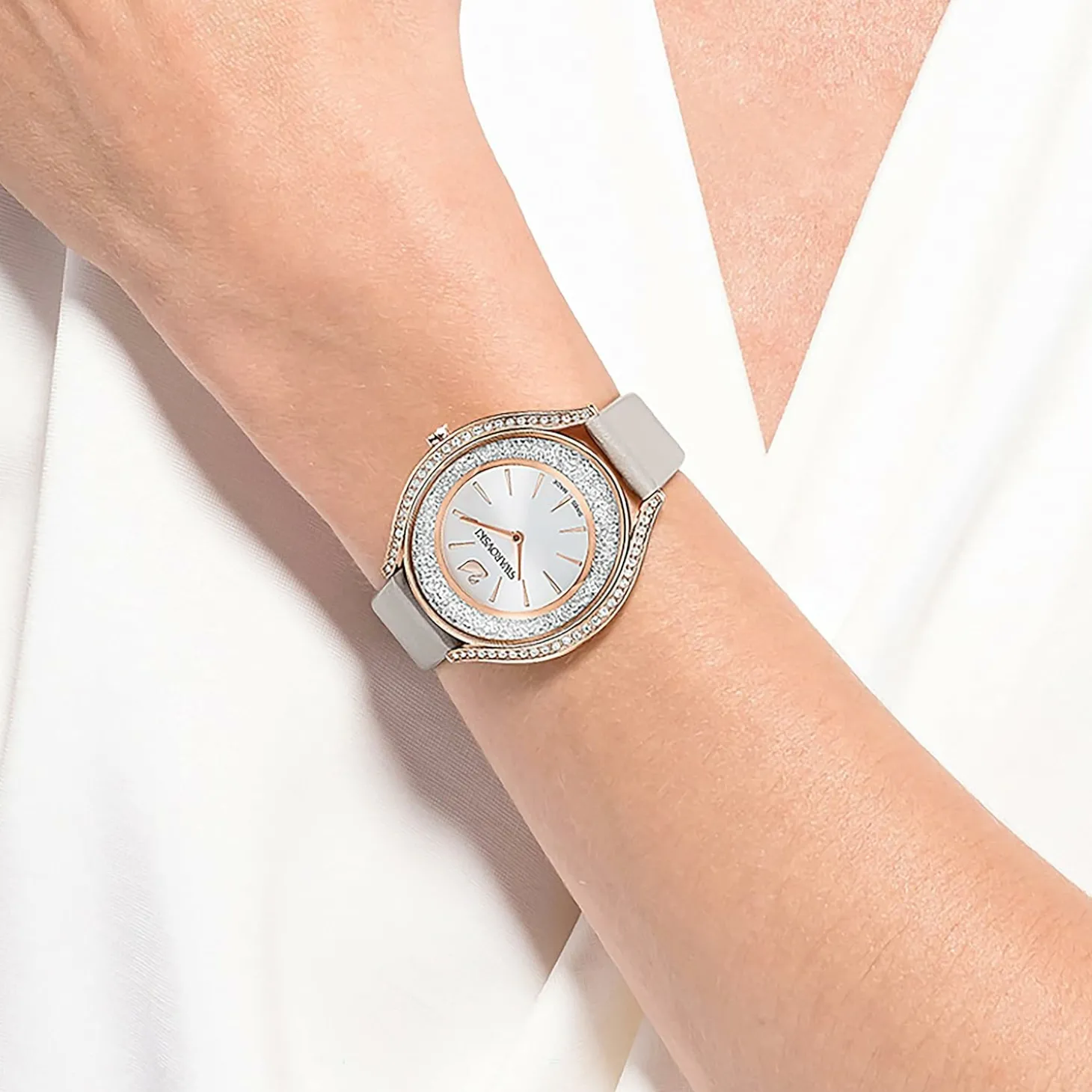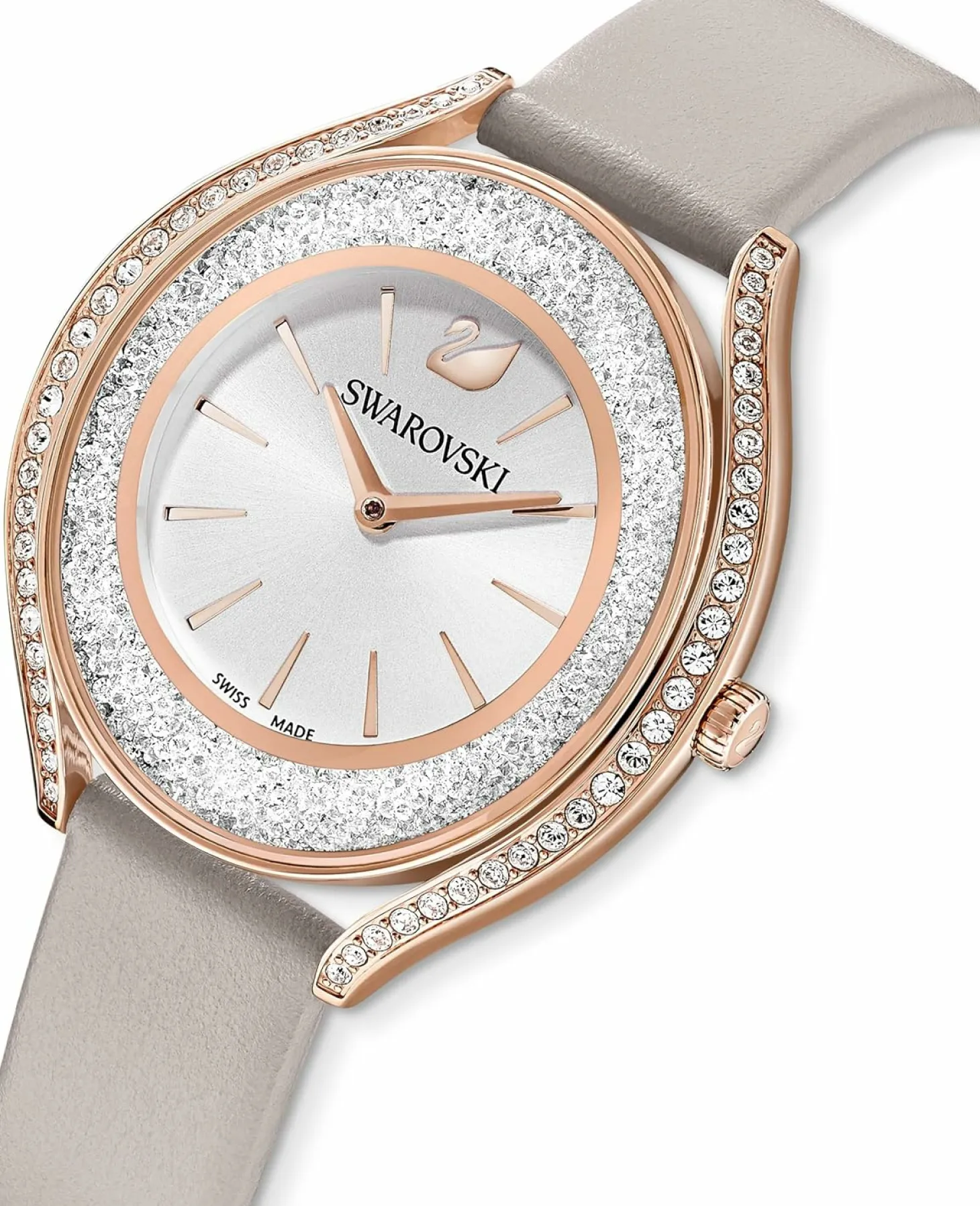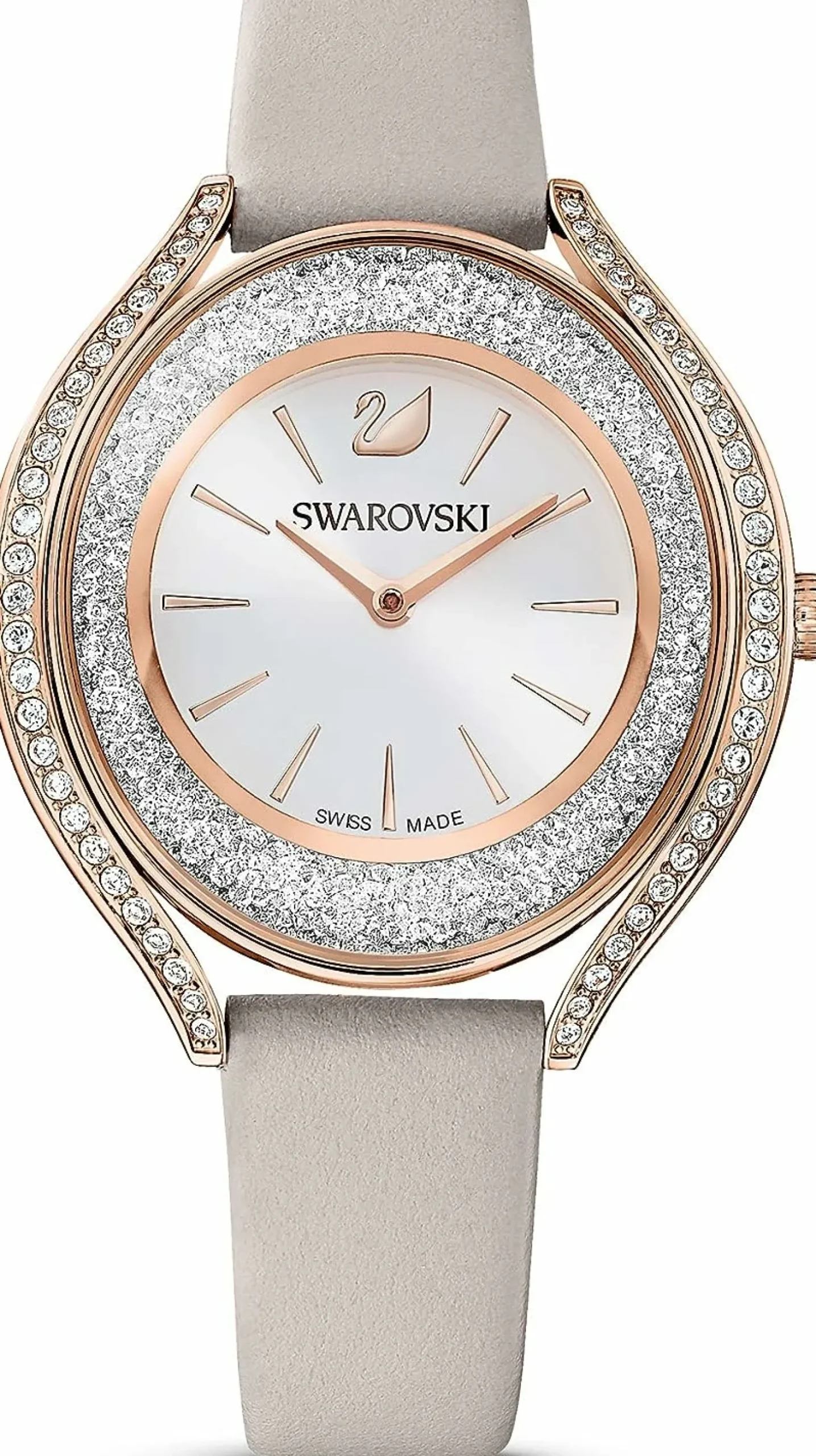 Produktinformationen „SWAROVSKI Damen Armbanduhr CRYSTALLINE AURA Lederarmband, Grau, Roségoldfarbenes 5519450“