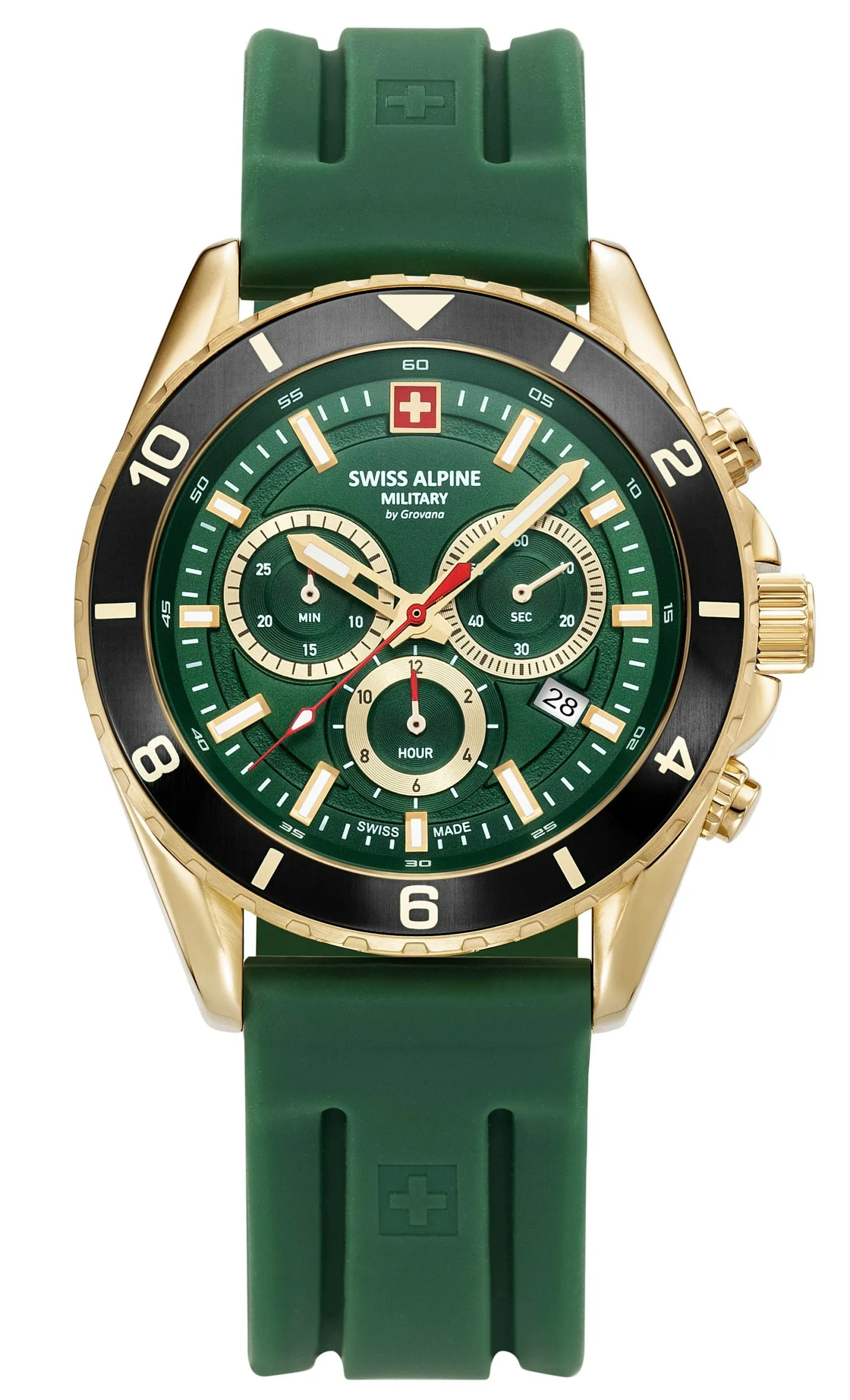 Produktinformationen „Swiss Alpine Military Herrenuhr 7034.9818 Sierra, Chronograph, Edelstahl, Grün-Gold, Artikelnummer 7034.9818“