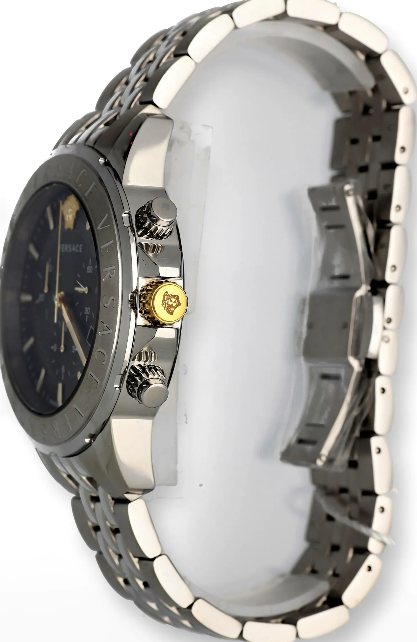 Produktinformationen „Versace Chronograph Signature Herrenuhr Silber Stahl Schwarz Zifferblatt 44mm VVEV6015 23“
