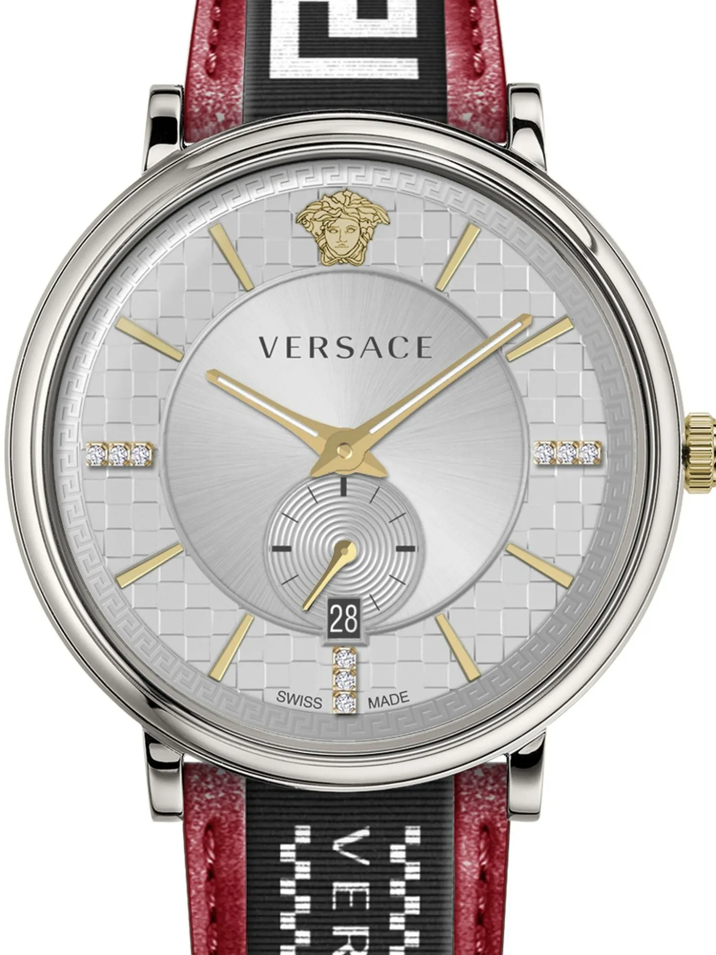 Produktinformationen „Versace Herren Armbanduhr V-circle 42 mm Multifunktionszifferblatt mit Datumsfenster Armband Leder, Stoff VEBQ01919“