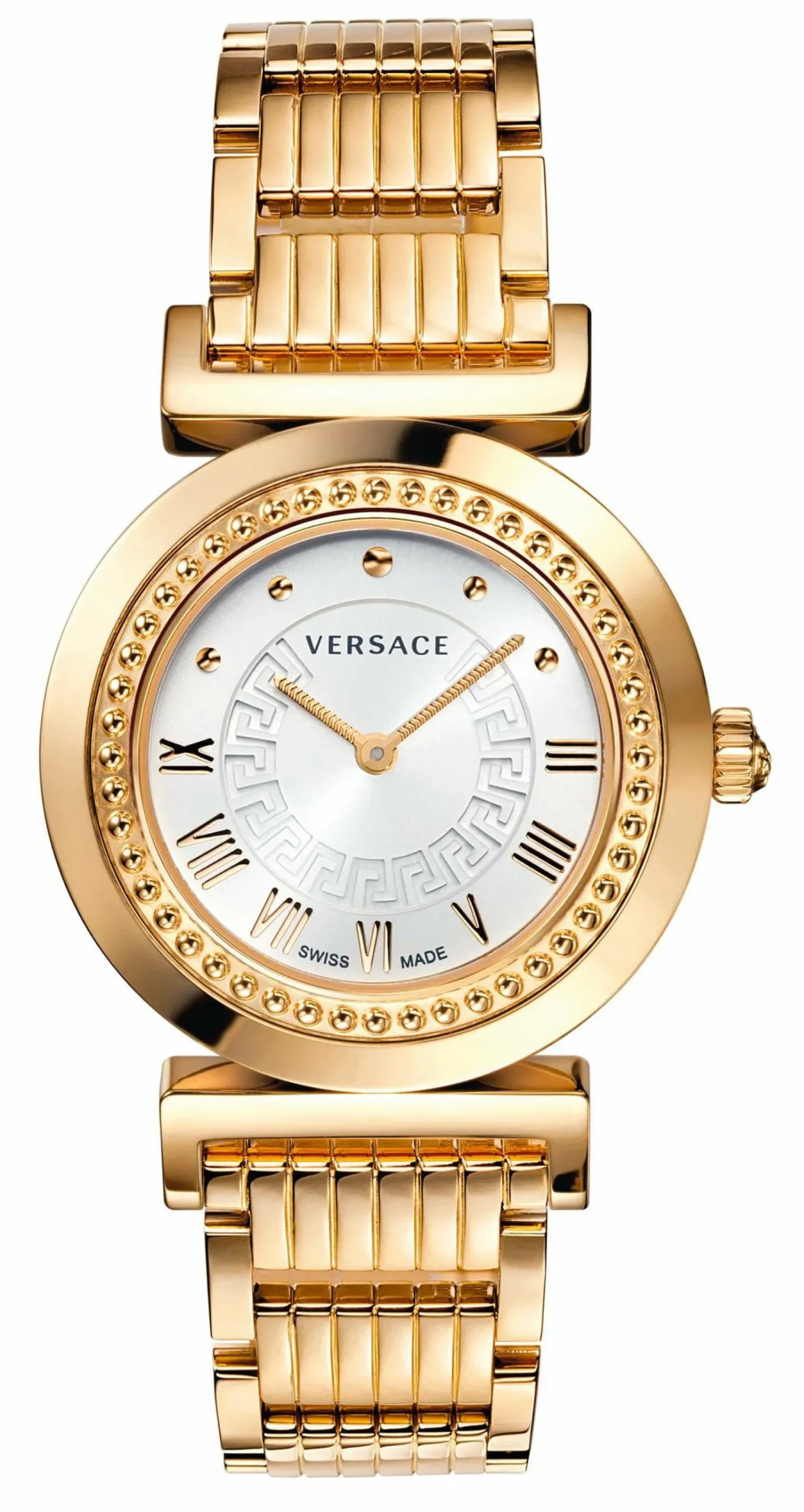 Produktinformationen „Versace Vanity Damenuhr Gold Stahlgehäuse Silber Zifferblatt 34mm P5Q80D001 S080“