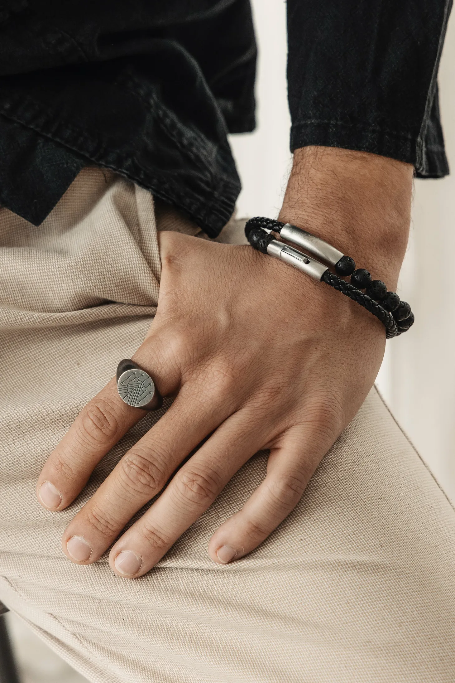 Produktinformationen „Armband Lavakugeln und Leder schwarz 21cm 41185181007966“