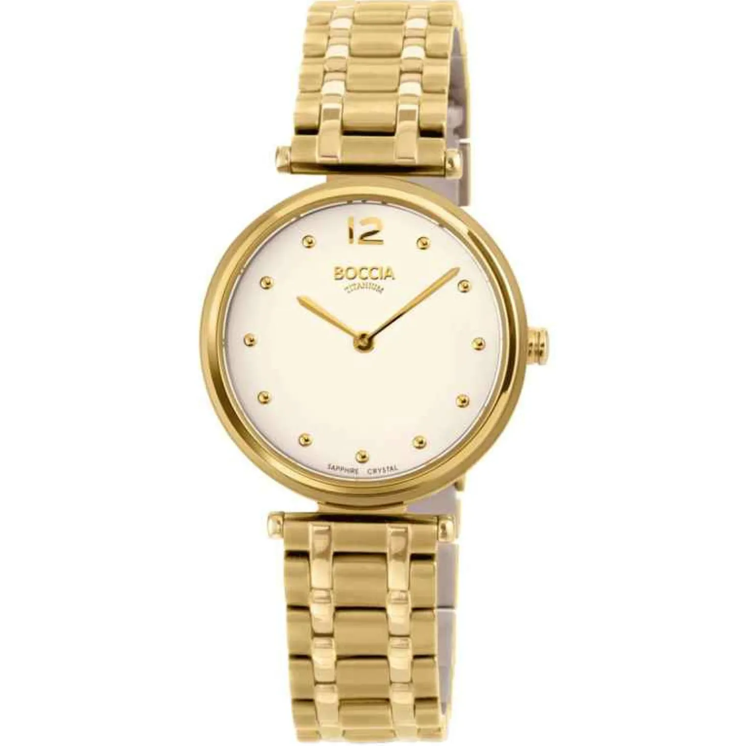 Produktinformationen „Boccia Damenuhr Gelbgold 3349-04“