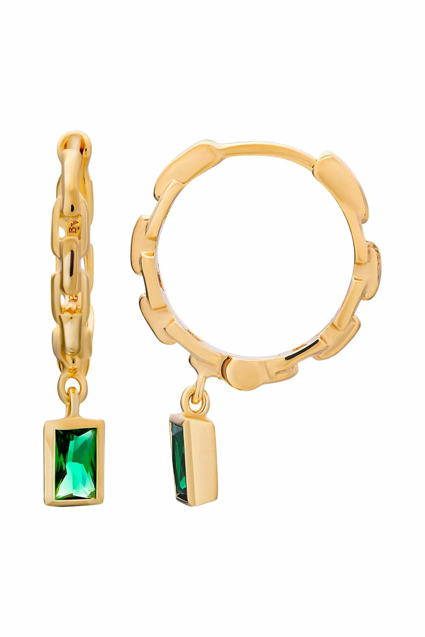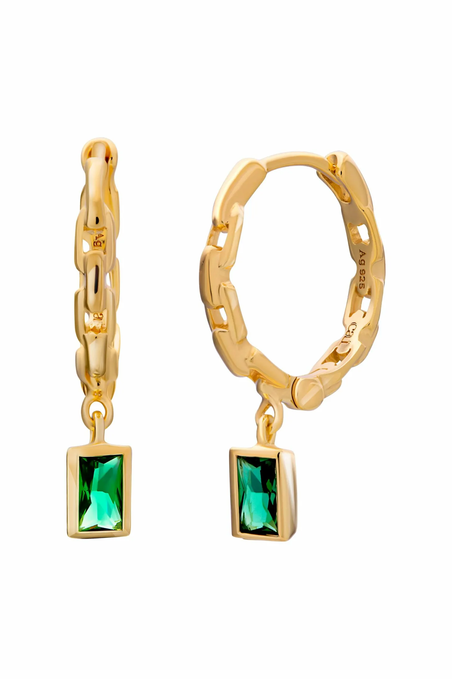Produktinformationen „Creole 925 Sterling Silber vergoldet Kettendesign Baguette Anhänger grün 41185176453214“