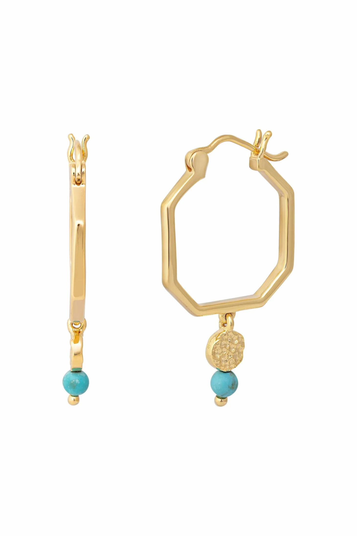Produktinformationen „Creolen 925 Silber vergoldet Oktagon Plättchen türkiser Howlith 41185024245854“