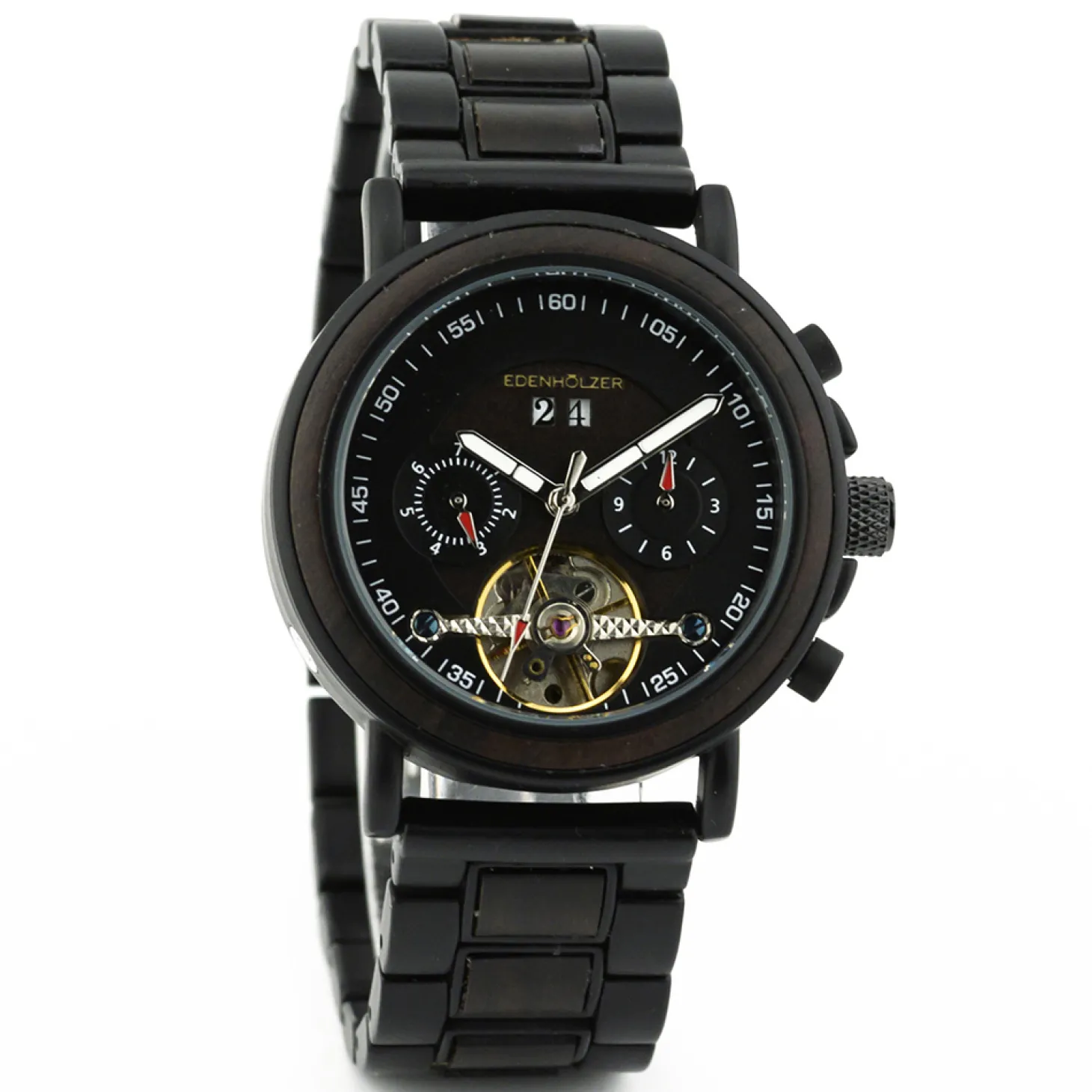Produktinformationen „Edenhölzer Holzuhr Damen Armbanduhr Automatik Borneo Holzarmband Datumsanzeige“