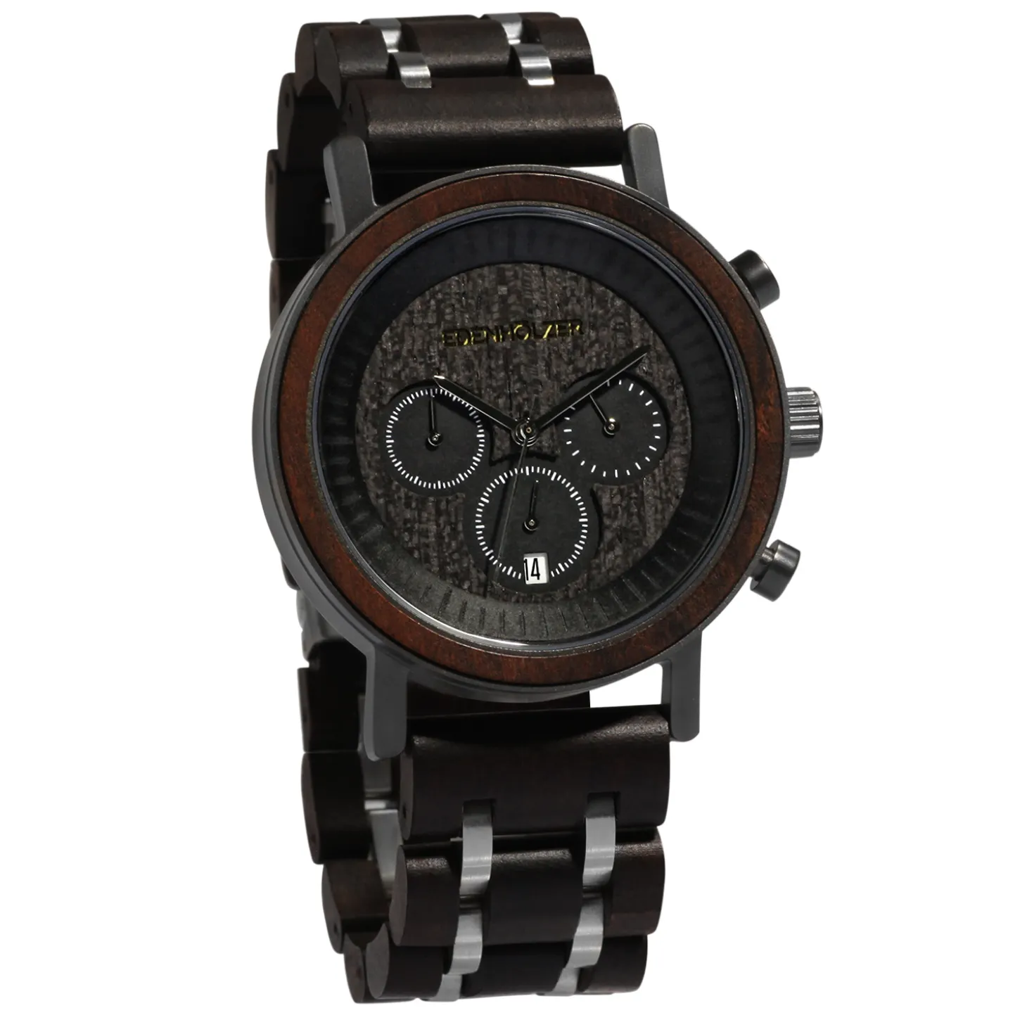Produktinformationen „Edenhölzer Holzuhr Herren Armbanduhr Chronograph Hardlex Aruba Datumsanzeige“