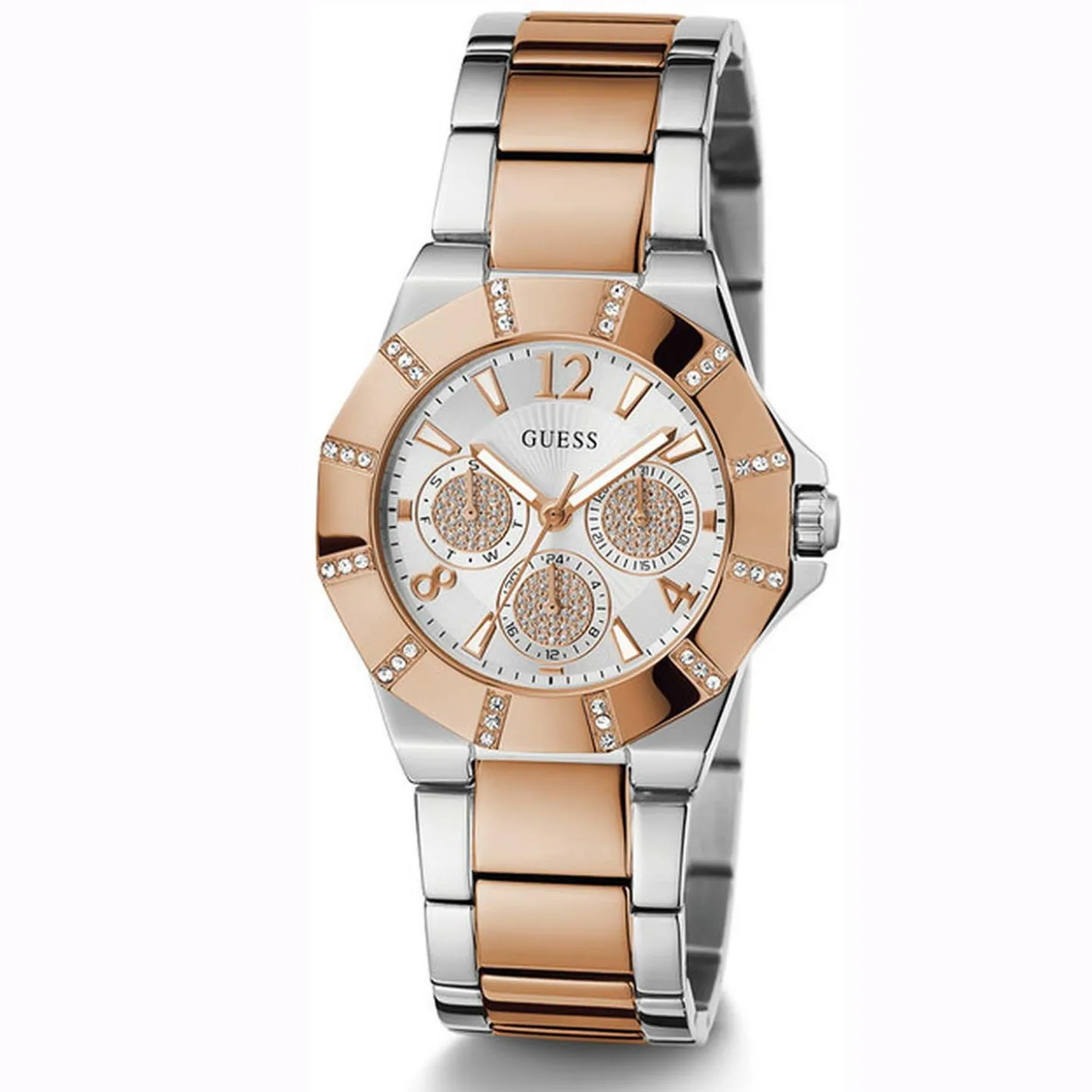 Produktinformationen „Guess Damen Armbanduhr Sunray Multifunktion rosegold, silber 36 mm GW0616L3“