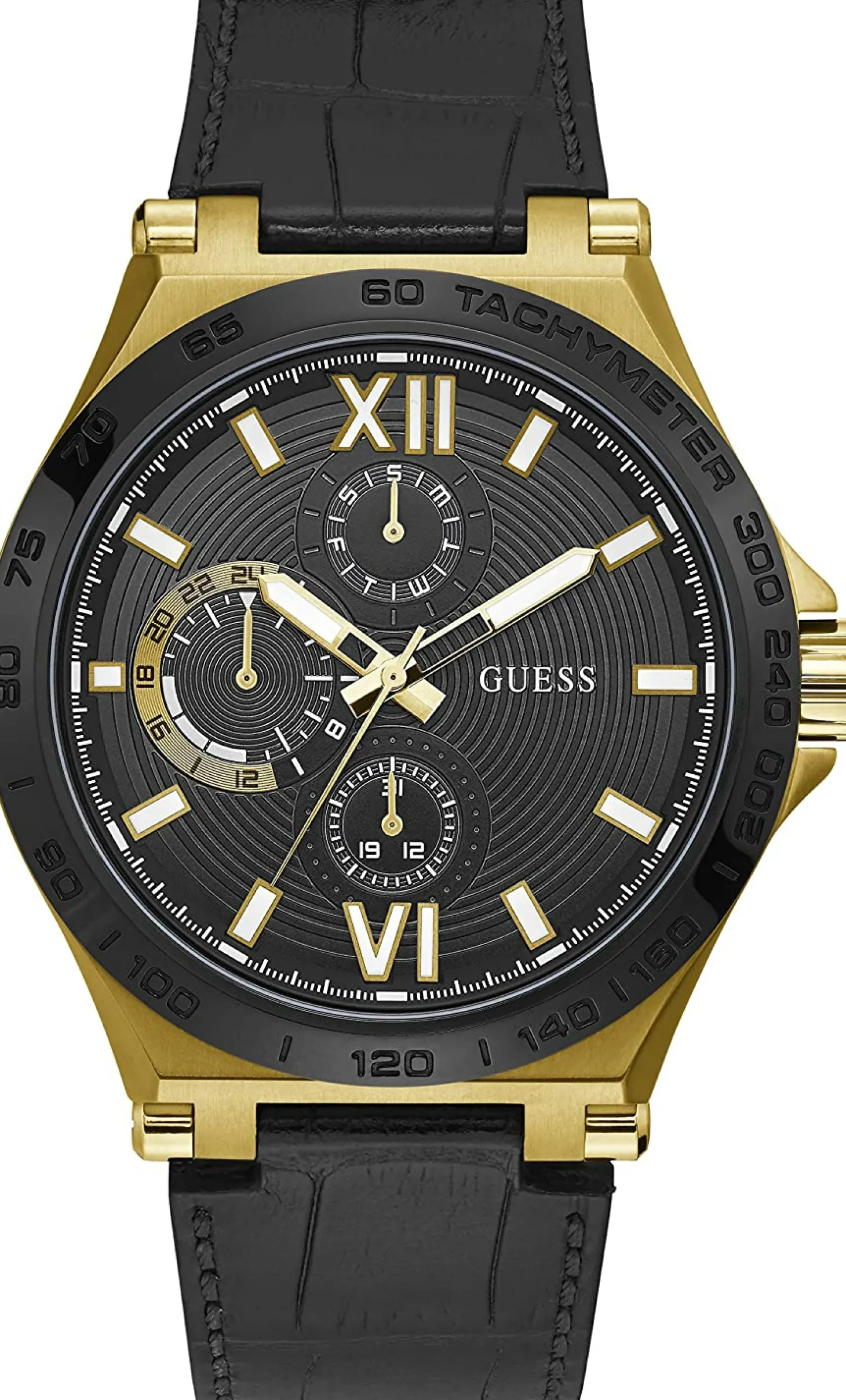 Produktinformationen „Guess Herren Uhr Edelstahl Farbe Gold Amband Leder/silikon GW0204G1“