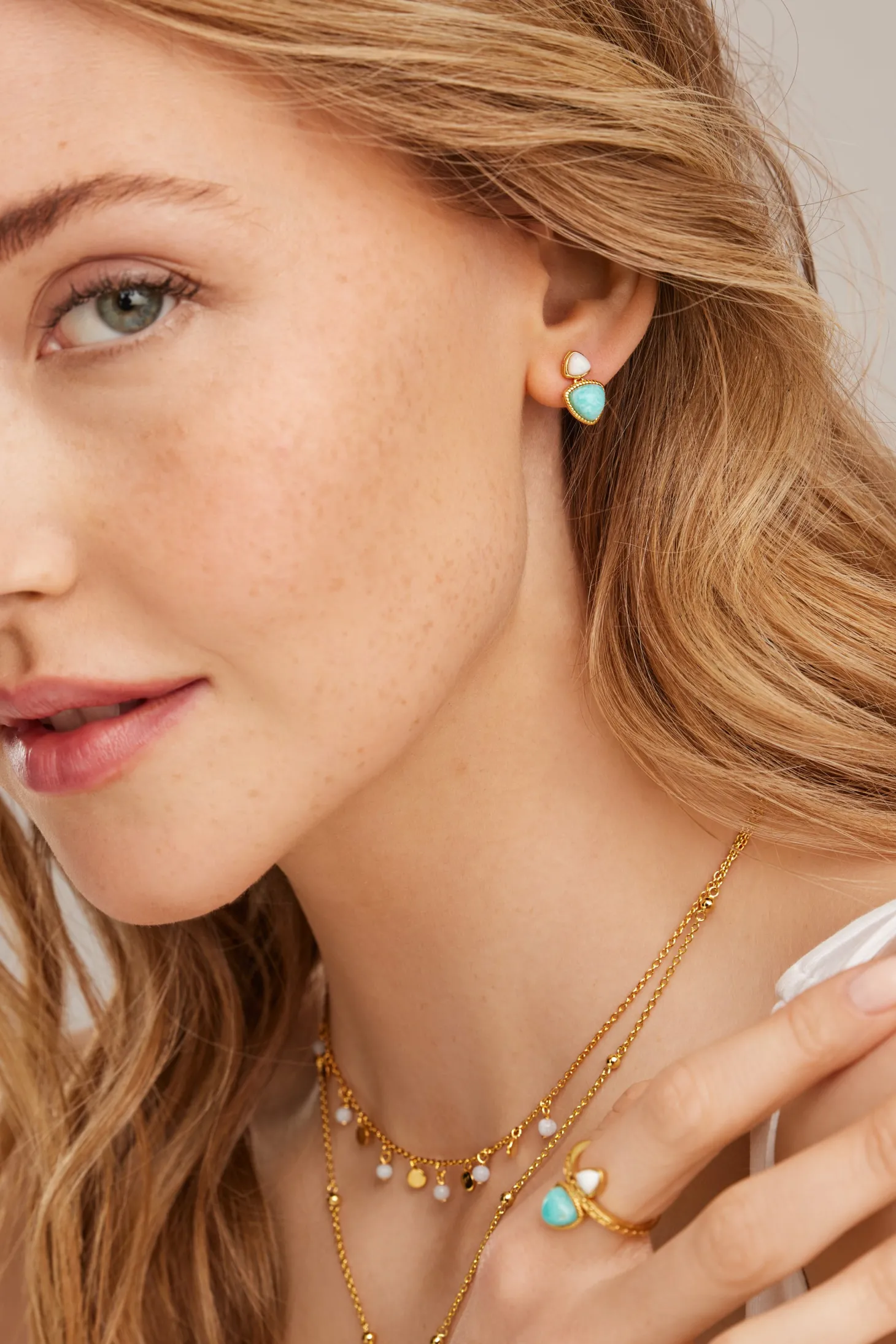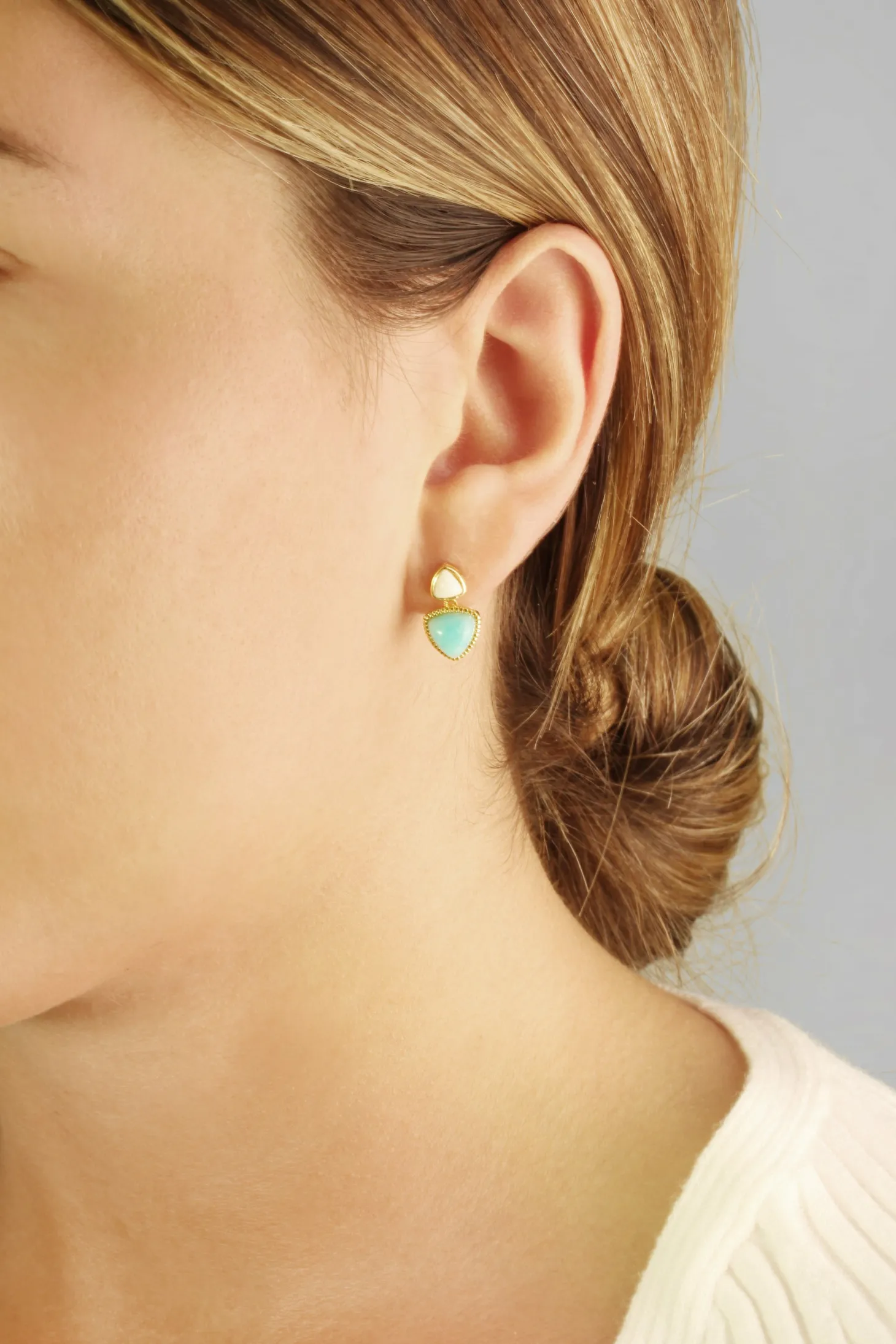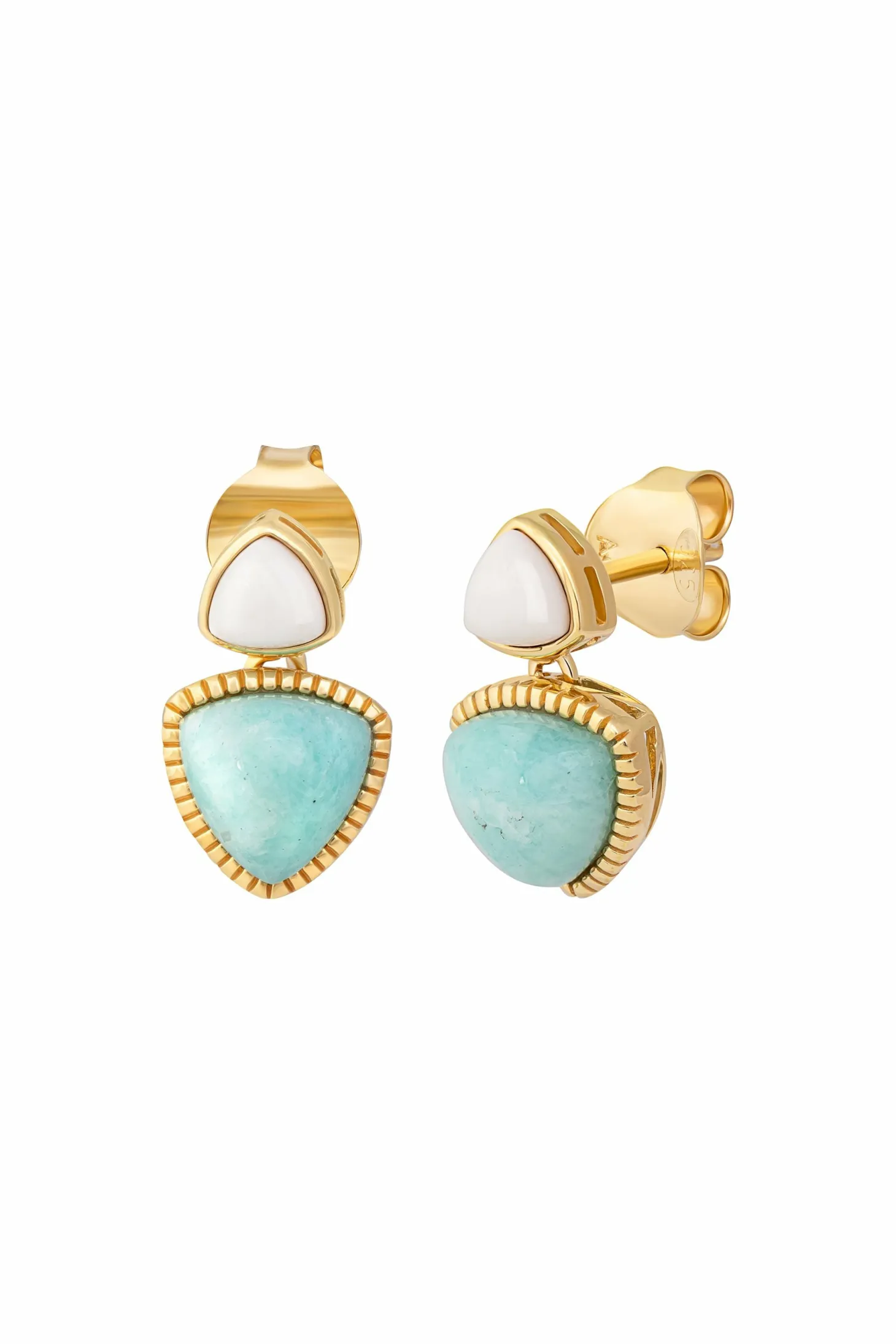 Produktinformationen „Ohrstecker 925 Silber vergoldet Dreiecke Amazonit & weißer Achat 41185021329502“