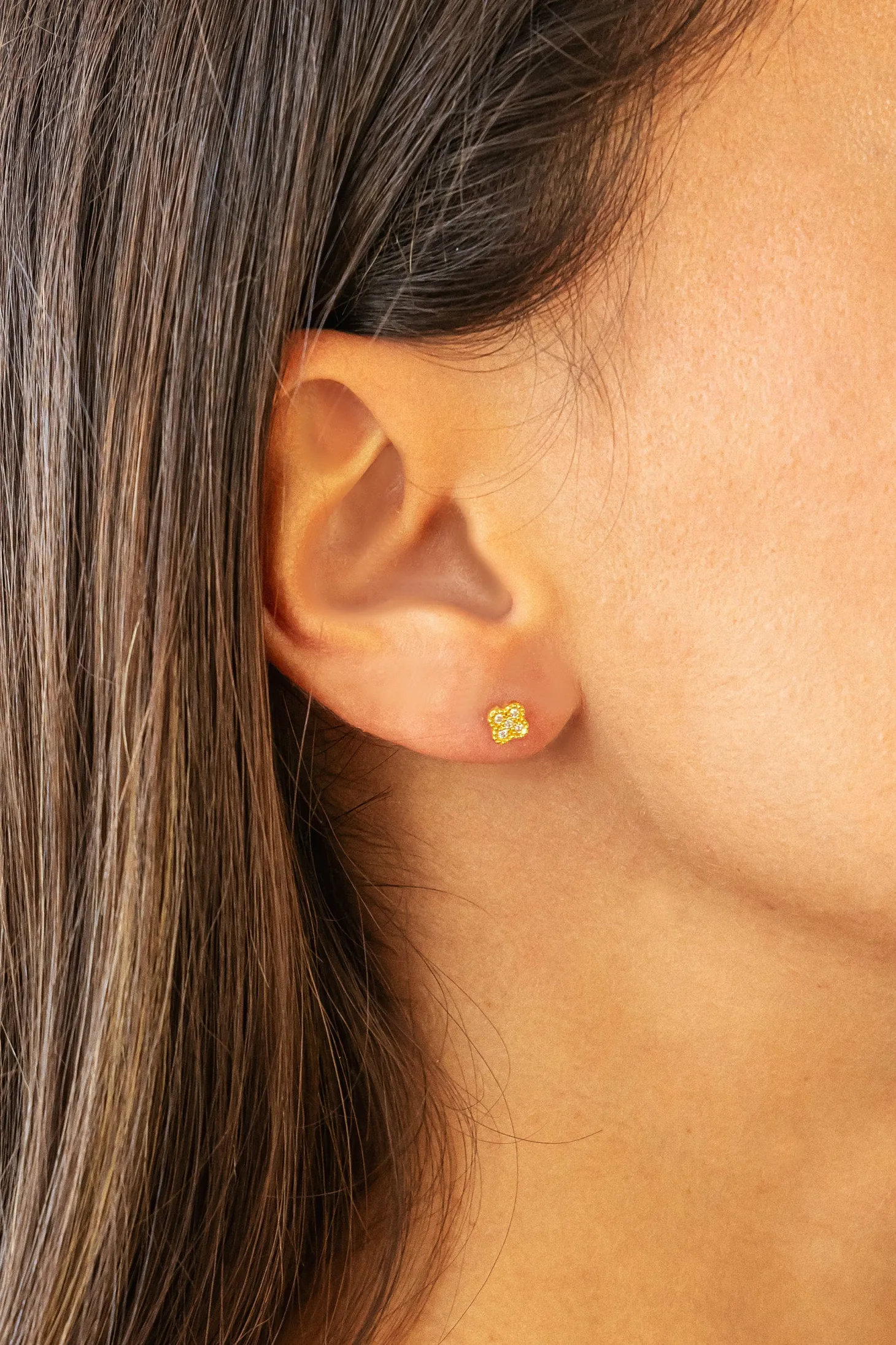 Produktinformationen „Ohrstecker 925 Sterling Silber gelb vergoldet Clover Kleeblatt Zirkonia 41185117995102“