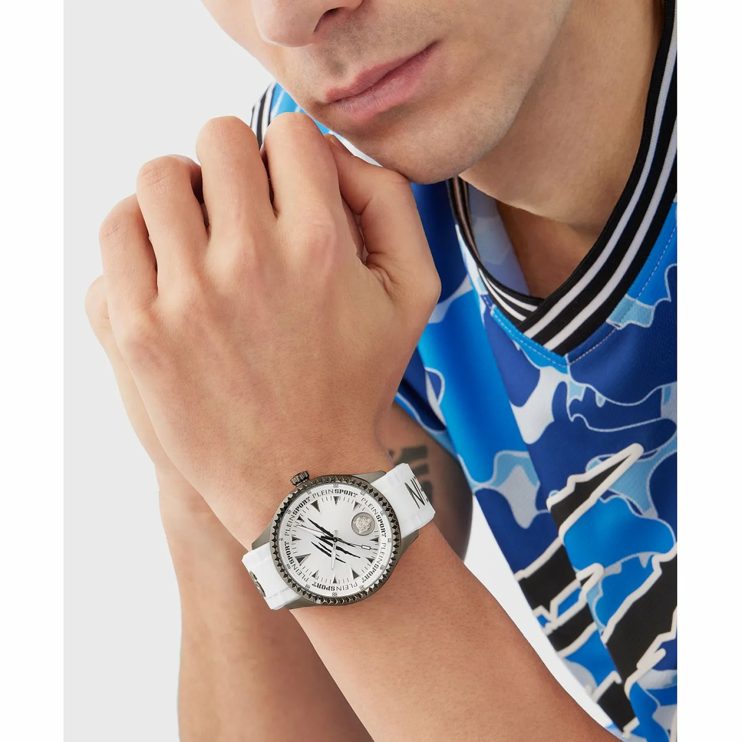 Produktinformationen „Plein Sport Herren Uhr LINEMAN PS5BA0224 Edelstahl IP Gunmetal / Silikon Weiß 45 mm“