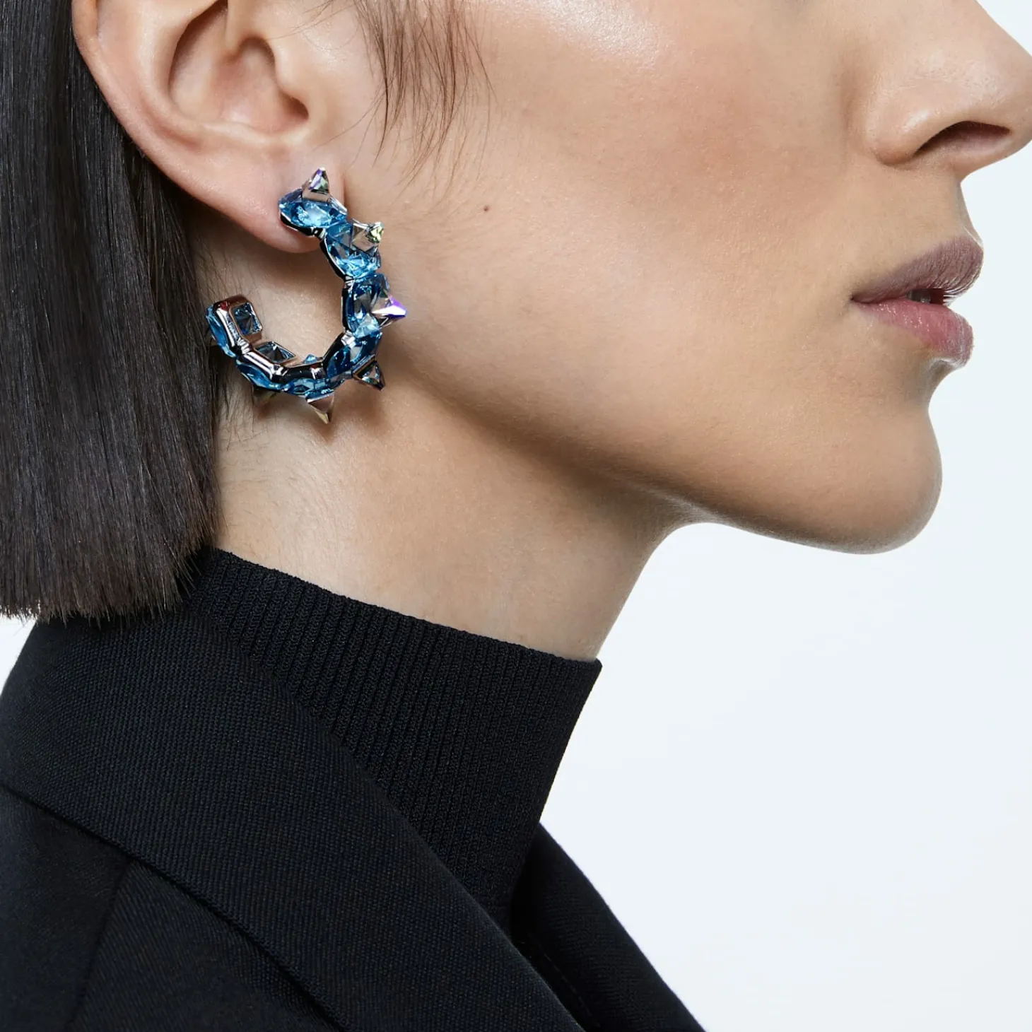 Produktinformationen „Swarovski Damen Ohrringe Ortyx Kreolen Pyramidenschliff, Blau, Rhodiniert 5600894“