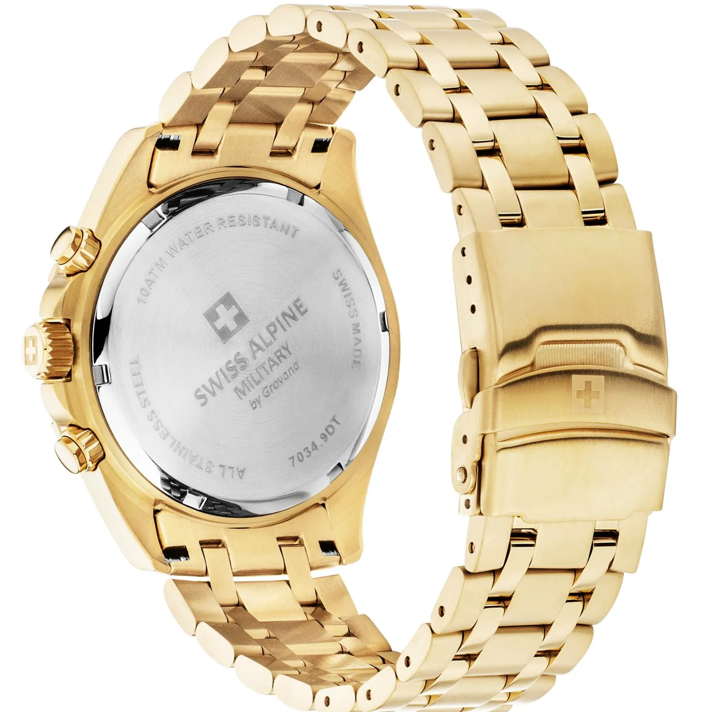 Produktinformationen „Swiss Alpine Military 7034.9118 Sierra Chrono Herrenuhr – Edelstahlgehäuse in Gold mit grünem Ziffernblatt 7034.9118“