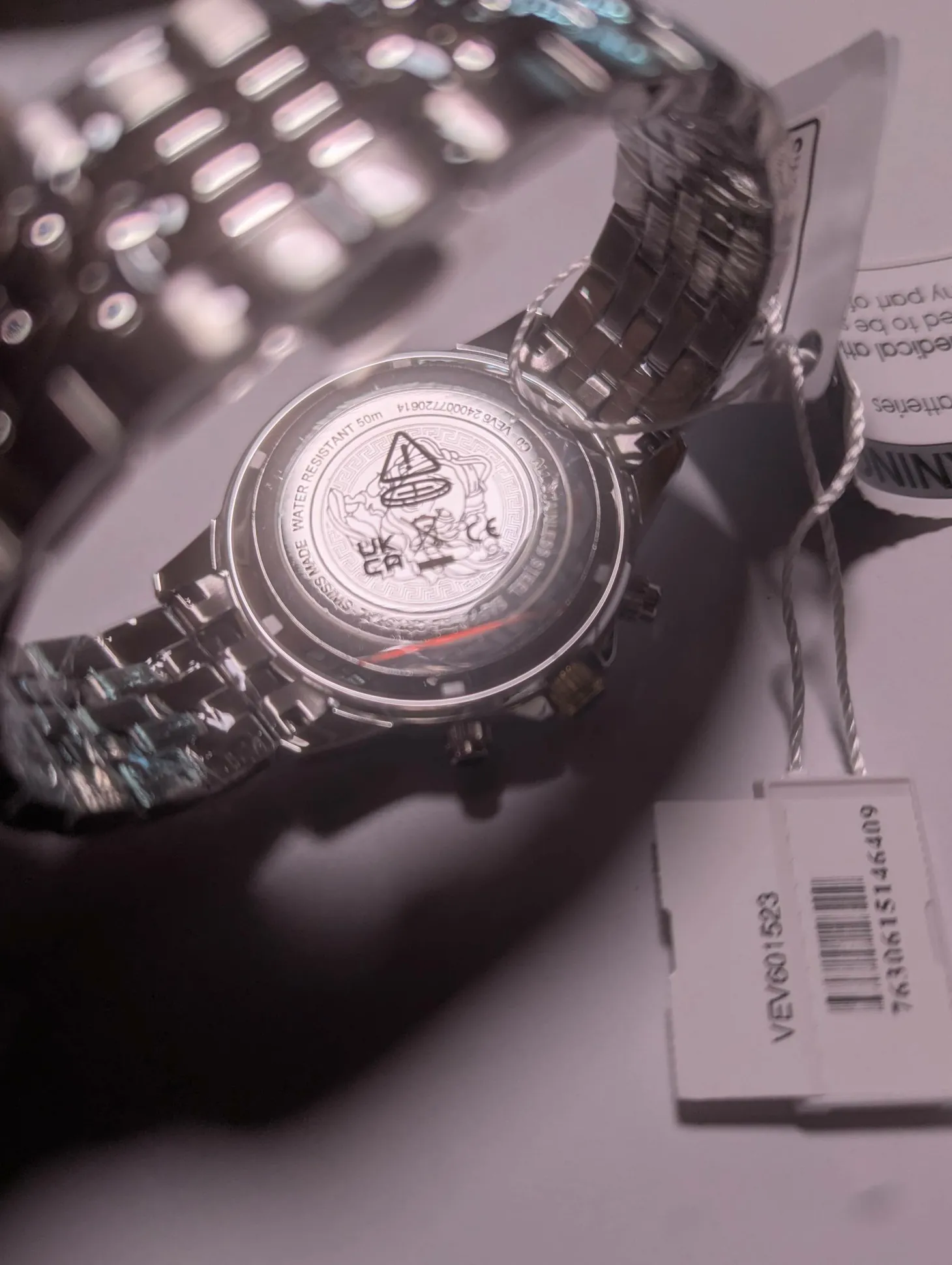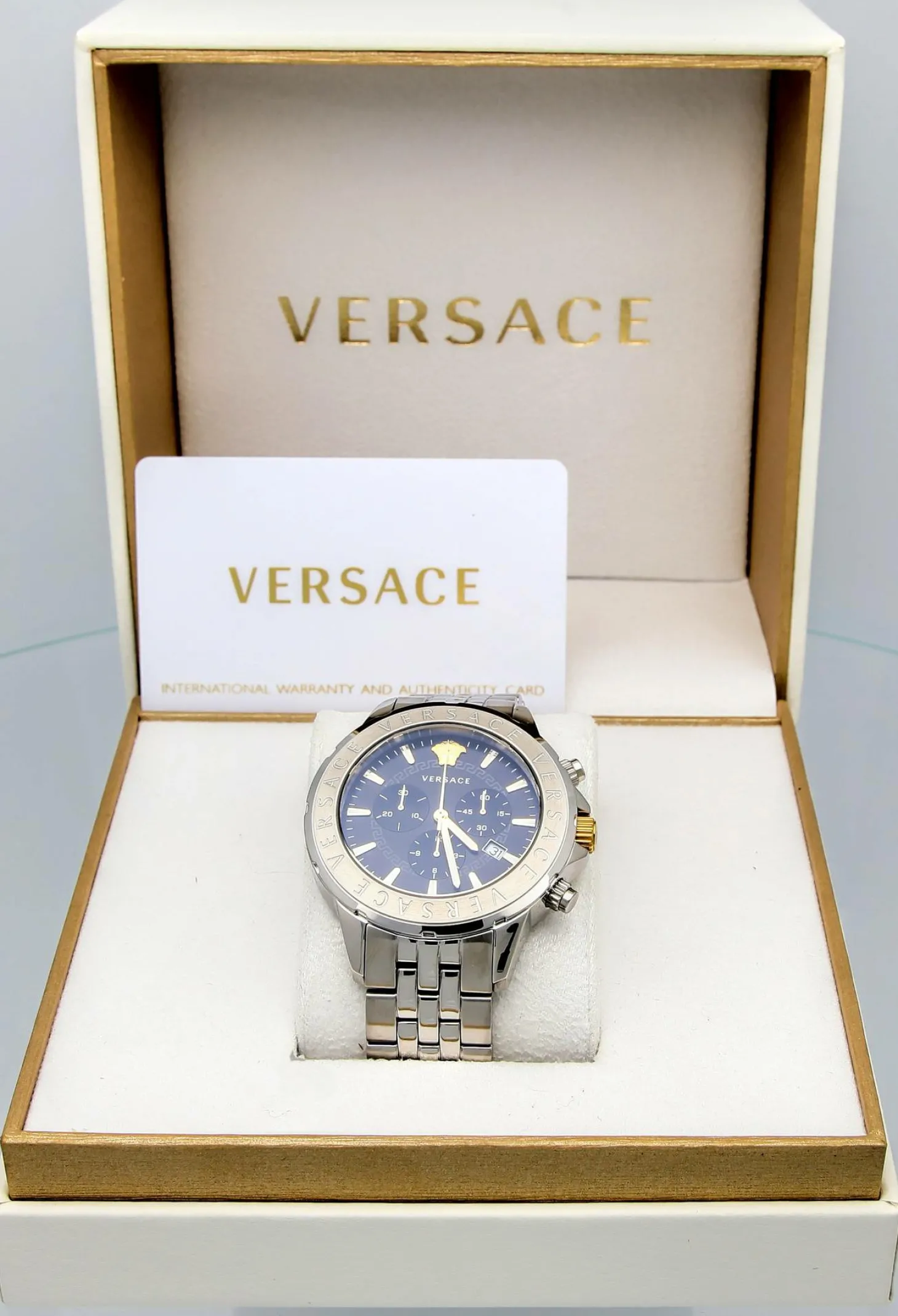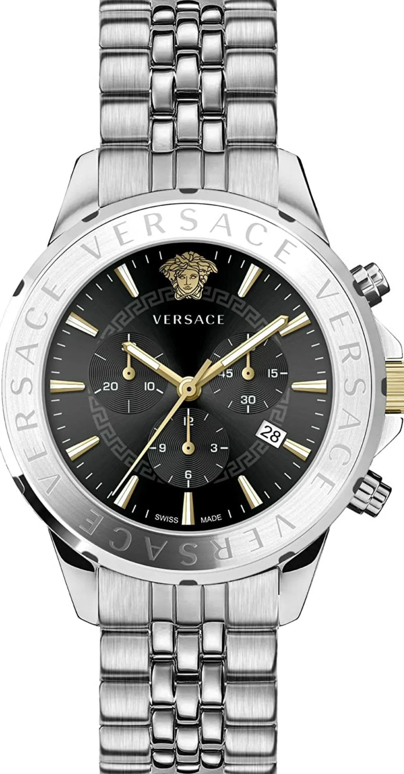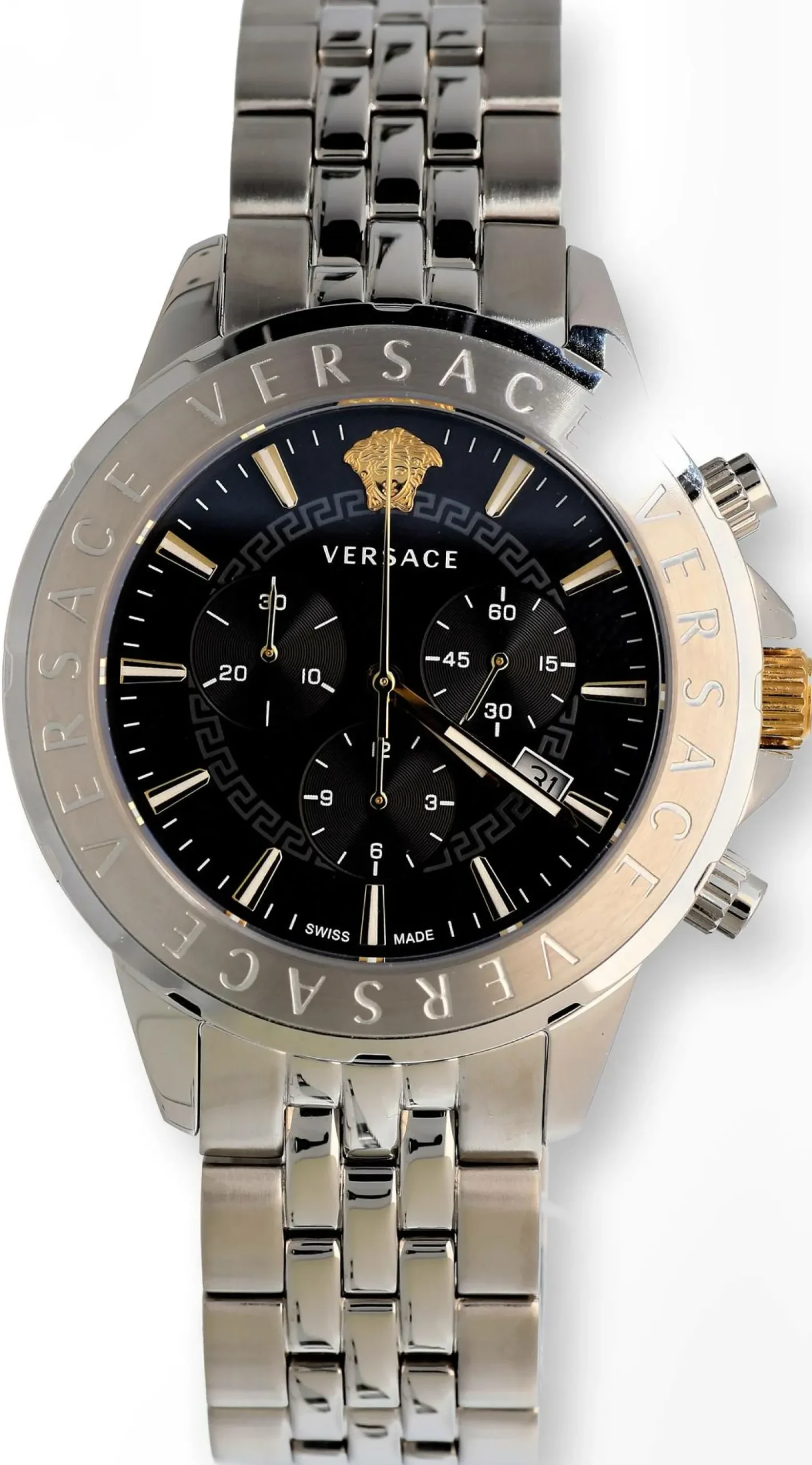Produktinformationen „Versace Chronograph Signature Herrenuhr Silber Stahl Schwarz Zifferblatt 44mm VVEV6015 23“