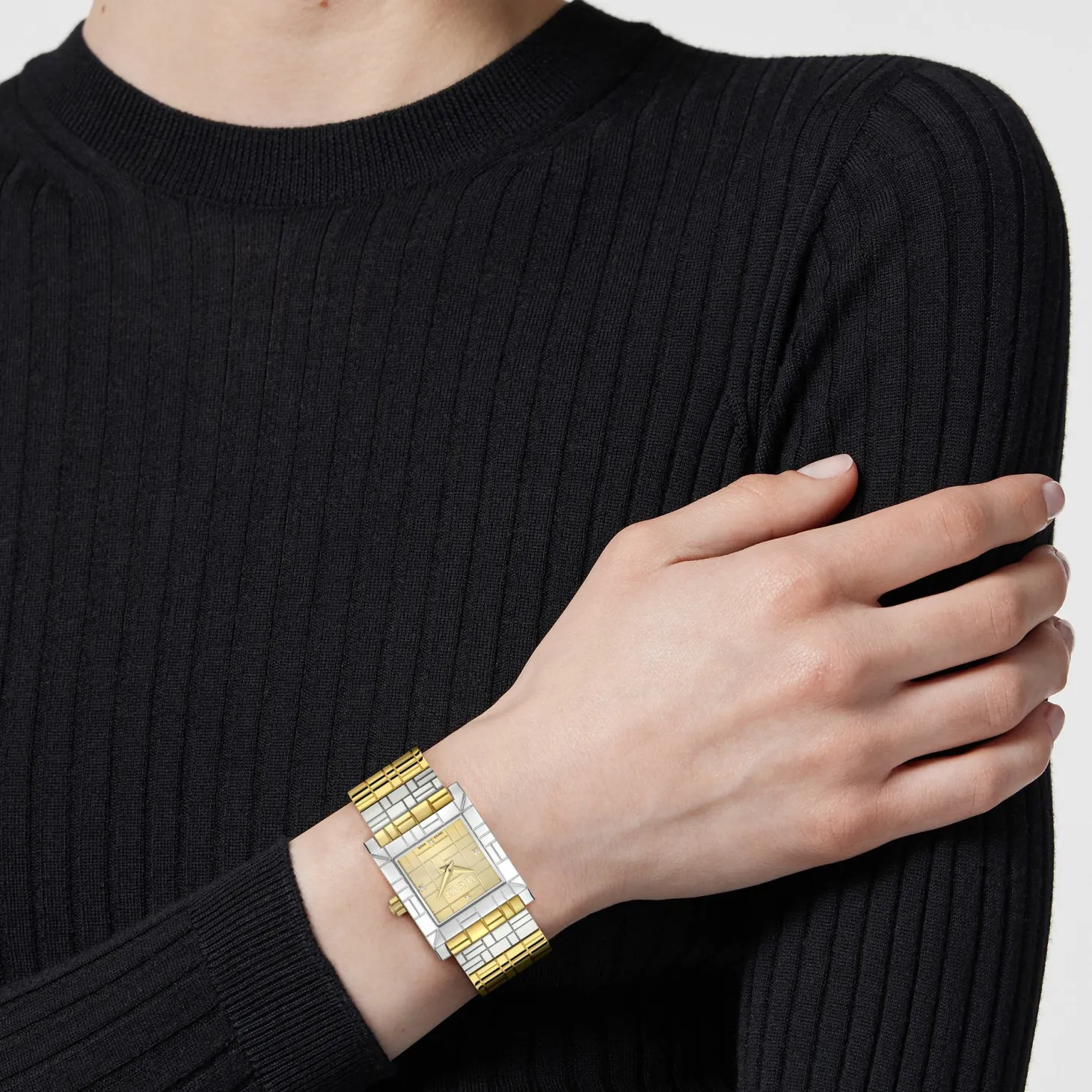 Produktinformationen „Versace Mosaic VE9B00424 Damen 22 mm Two‑Tone Stahl/Gold“
